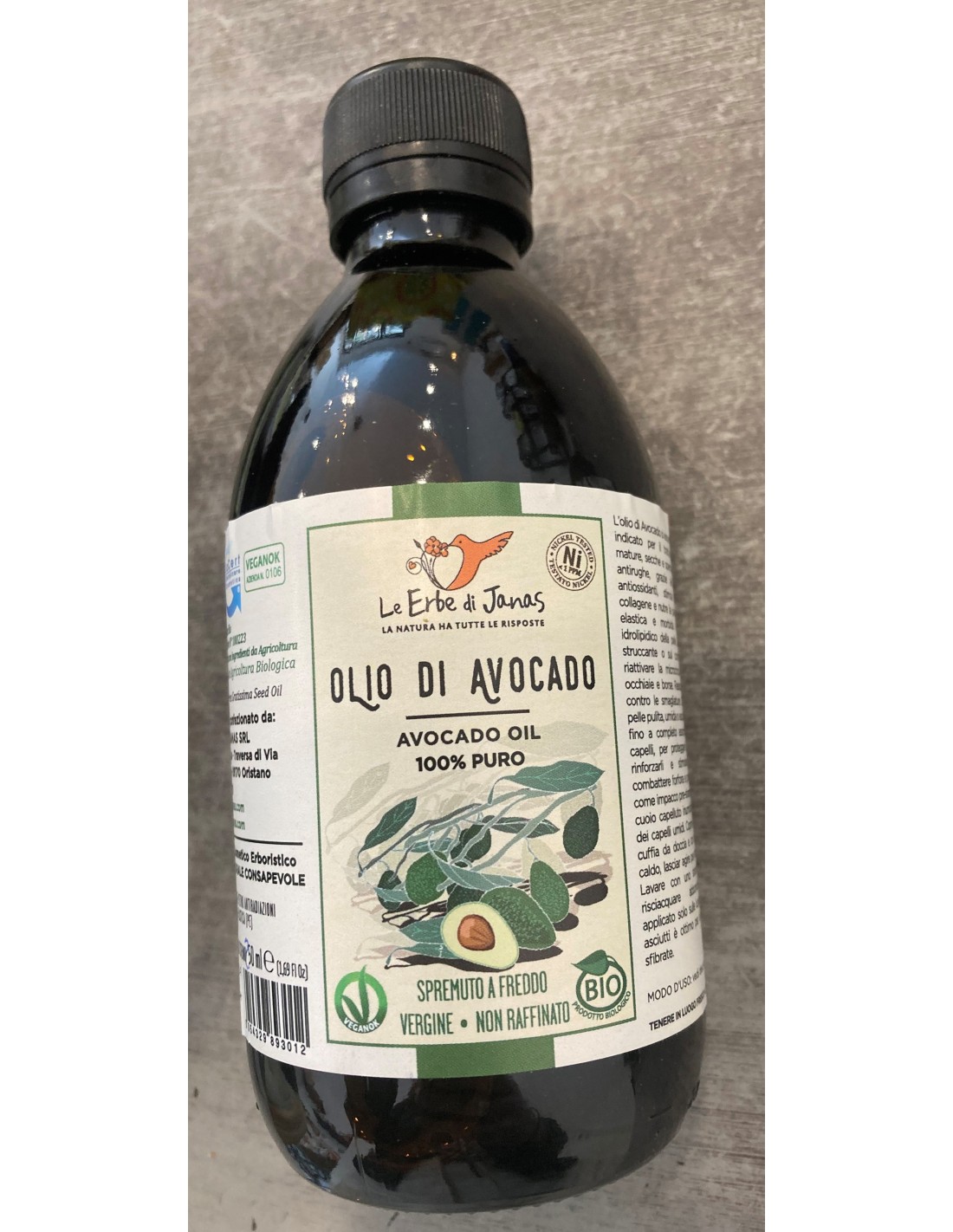 Olio di avocado biologico e vegano, spremuto a freddo e vergine.