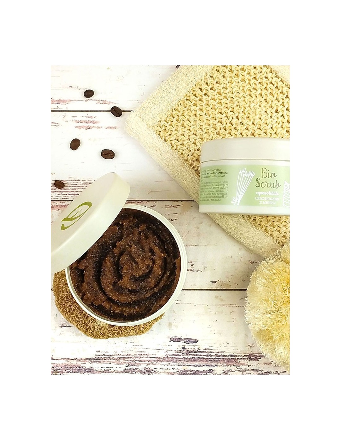 COSMETICO BIOLOGICO ED EQUOSOLIDALE: Bio Scrub LEMONGRASS E MENTA de "La Saponaria" con mandorle dolci, zucchero di canna ed oli essenziali solidali.