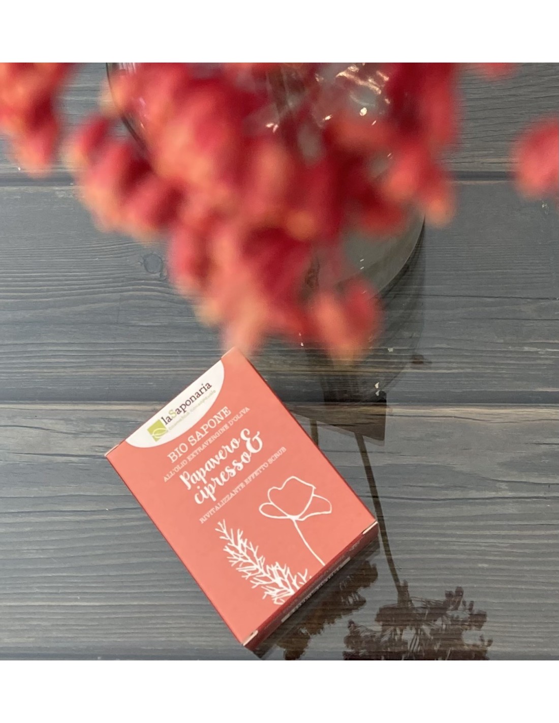 BIO SAPONE ALL'OLIO EXTRA VERGINE DI OLIVA: papavero e cipresso effetto scrub