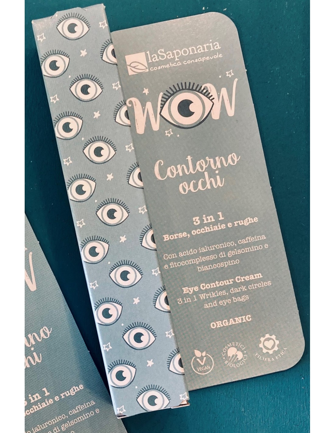 Il contorno occhi de La Saponaria, è una crema 3 in 1 che contrasta la formazione di borse, occhiaie e rughe.